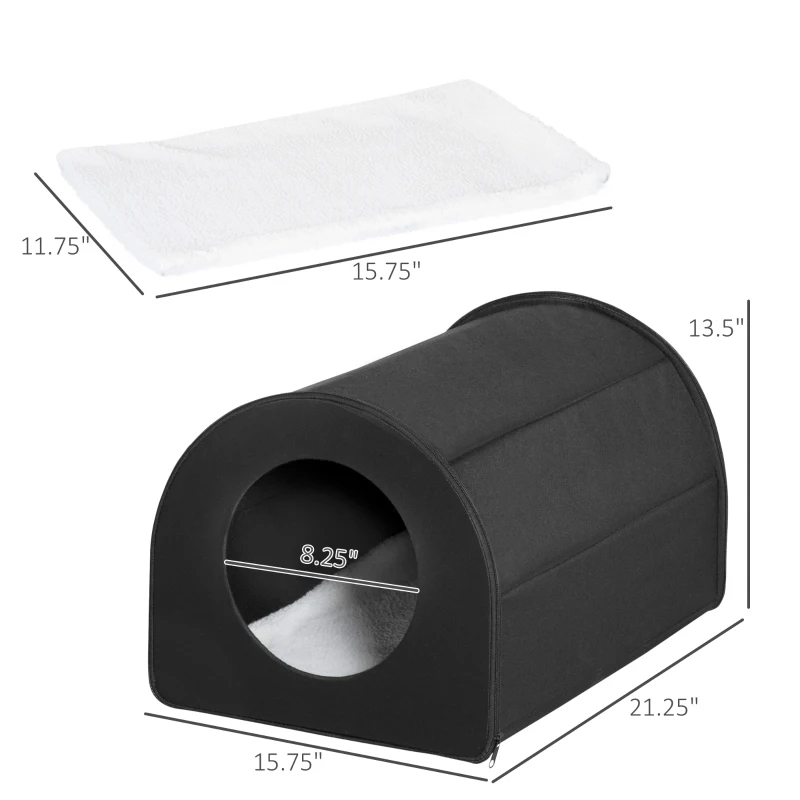 Dome Heated Cat House Portable And Waterproof Pet Shelter For Kitty In Winter, Black