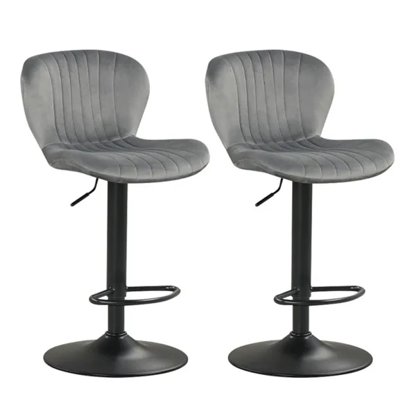 2-Pack Adjustable Height Bar Stools With 360° Swivel, Dutch Velvet Upholstered Bar Chai - Gray