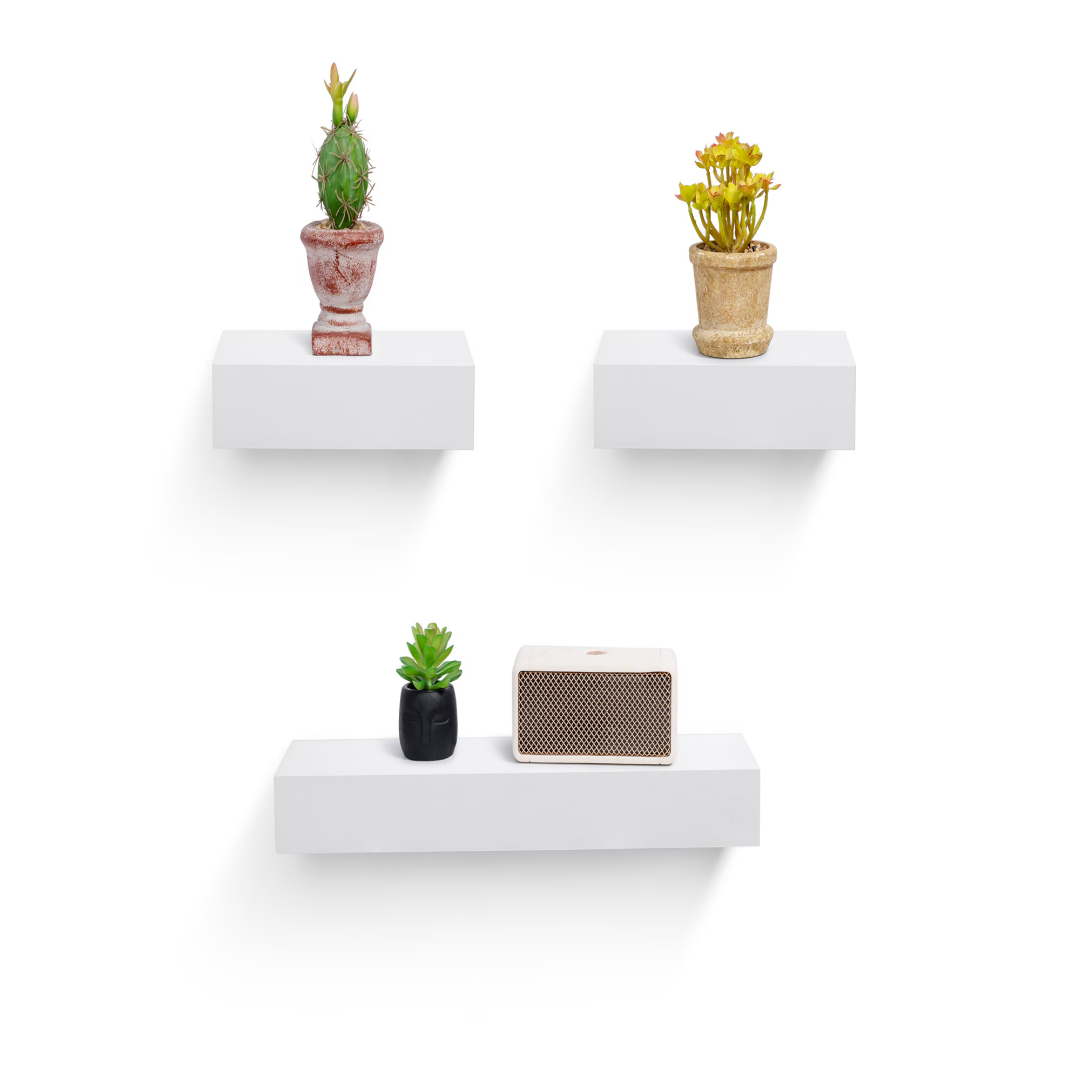 Floating Wall Shelves for Stylish Storage: Showcase your favorite decorative items, collectibles, and other treasured possessions, while also providing practical storage solutions.