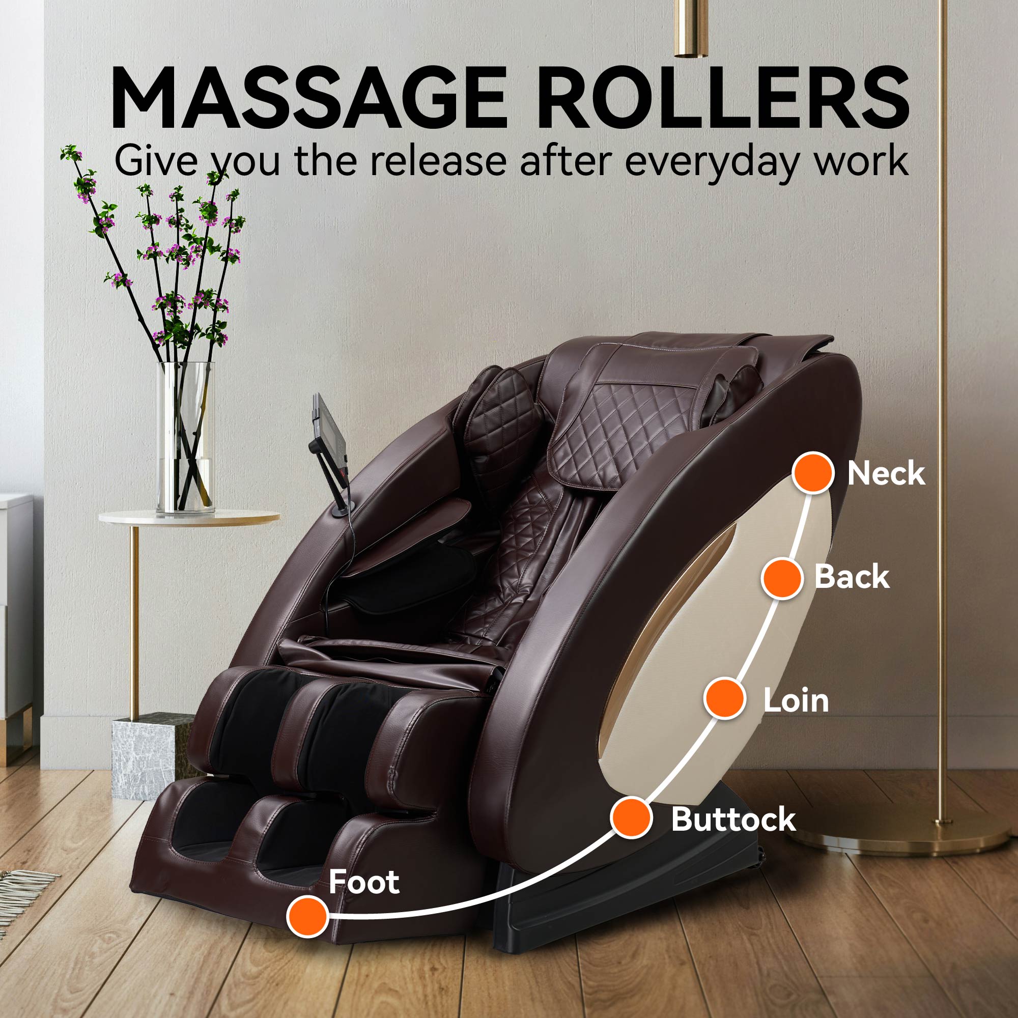 Product Name: Massage Chairs Full Body Massage Recliner with Foot Roller,Airbag Massage SL Track, Zero Gravity, Bluetooth Speaker,Brown